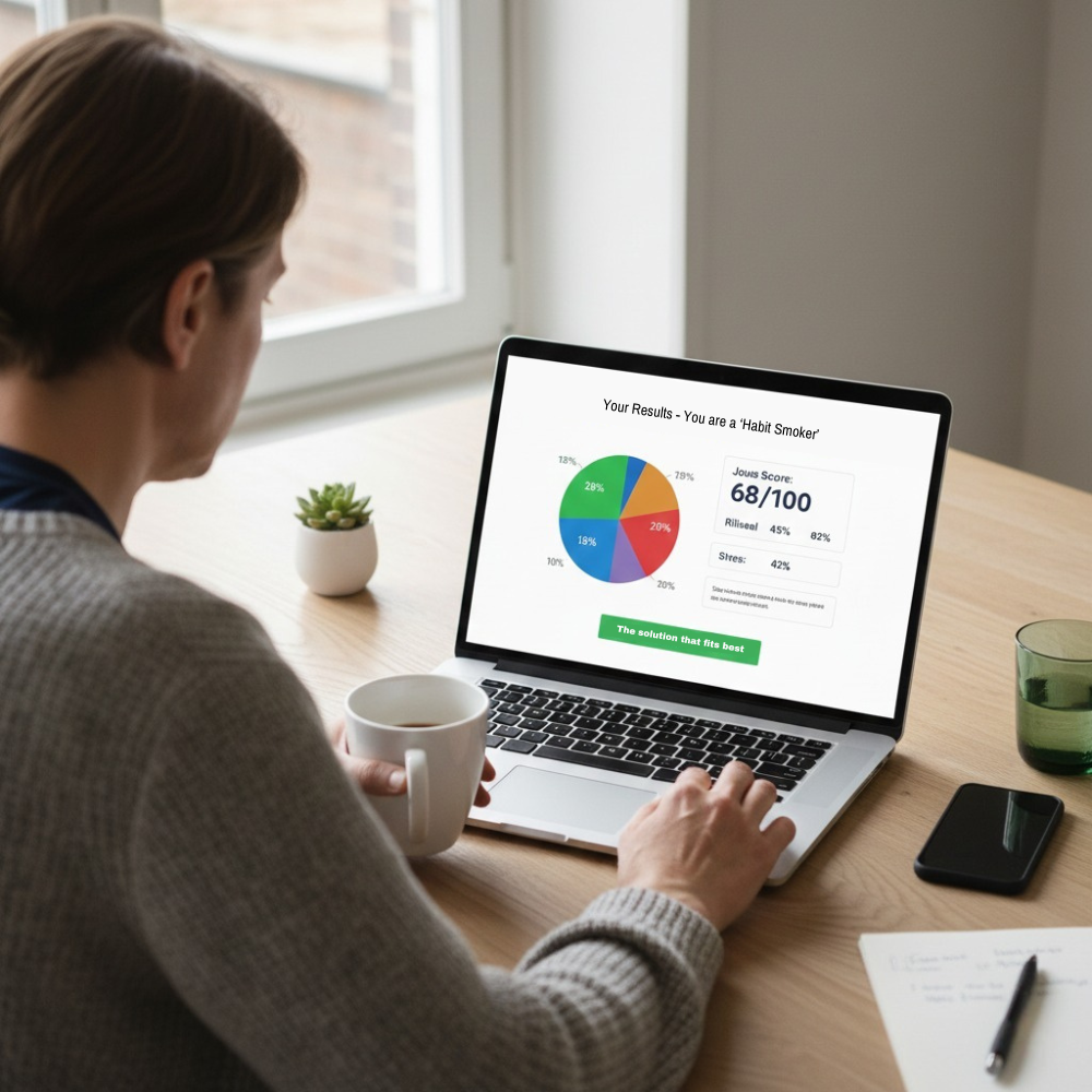 Deshalb machen wir es anders. Wir bieten kein Wundermittel an. Wir bieten mehrere wissenschaftlich fundierte Methoden, die jeweils für einen bestimmten Typ von Raucher entwickelt wurden. Allmähliche Reduzierung für diejenigen, die das Ritual beibehalten möchten. Natürliche Nikotinalternativen für diejenigen, die abrupt aufhören möchten, aber die Entwöhnung abmildern möchten. Verhaltenstools für diejenigen, die Muster durchbrechen möchten.